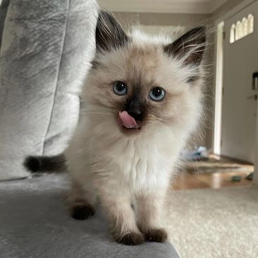 Nala is a 9-week-old Ragdoll kitten with dreamy blue eyes, a silky coat, and a gentle, loving nature. She’s everything people adore about Ragdolls — calm, cuddly, and completely devoted to her humans.
