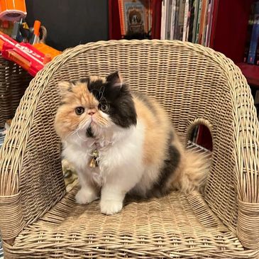 Milo is a 1-year-old Persian queen with a serene personality and a beautifully plush coat. She’s gentle, affectionate, and enjoys the finer things in life a quiet window seat, soft brushings, and calm companionship.